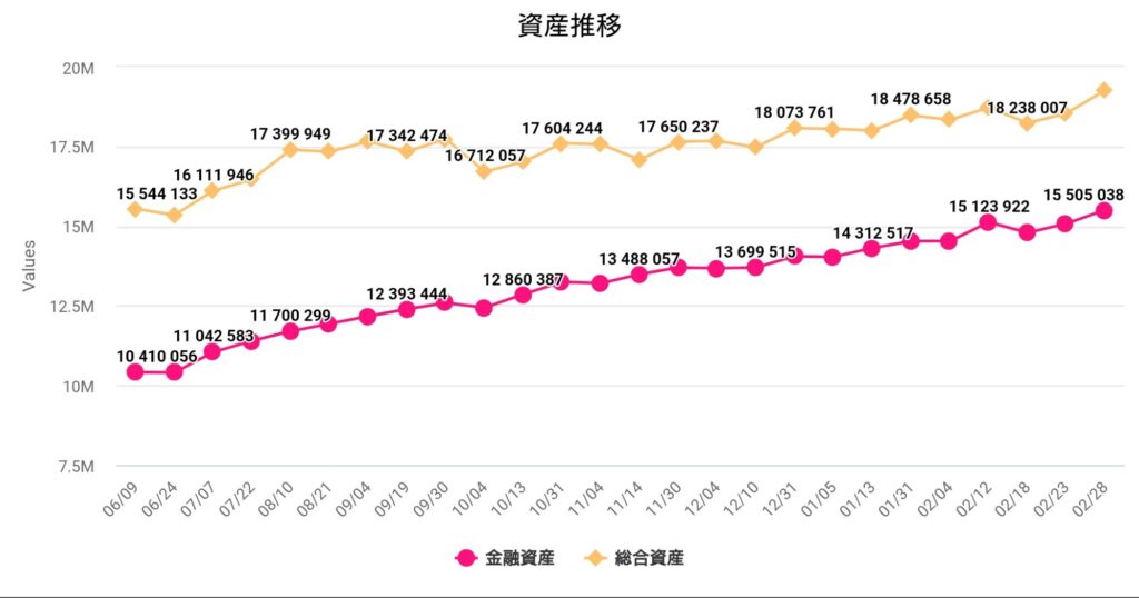 2月は金融資産は84万程程プラスです。