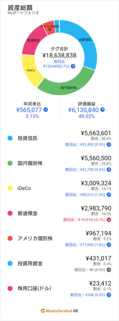 評価損益:6,130,840円↗ 49.02% 前回47.99%