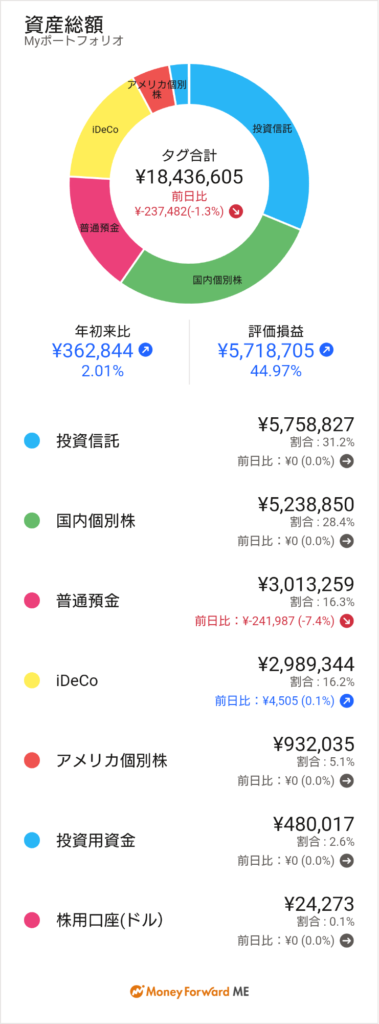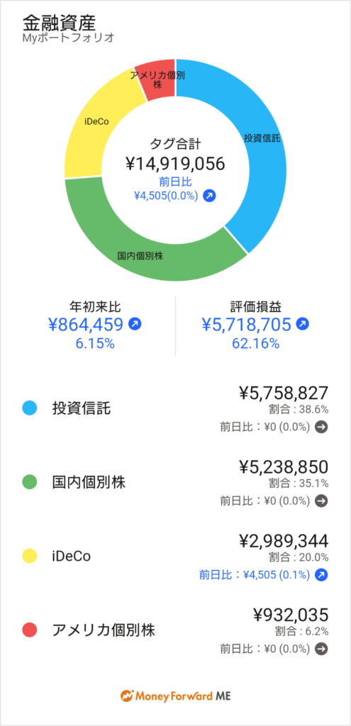 評価損益:5,718,705円↗ 44.97% 前回44.23%