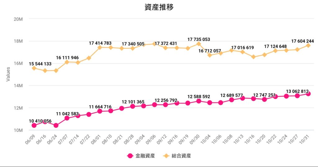 総資産:¥17,604,249 (前回¥17,735,053) -130,804円